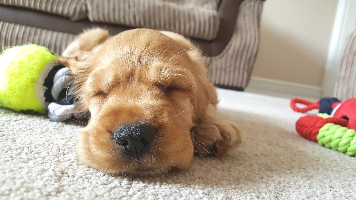 Po takim spacerku spróbuj ułożyć go na posłaniu z zabawką do żucia albo z jedzeniem. Zmęczony szczeniak uśnie (szczeniaki śpią nawet 22 godziny dziennie).